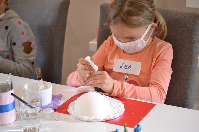 In diesem Kurs haben die kleinen Künstler eine weihnachtliche Iglu-Landschaft aus Zucker gestaltet....