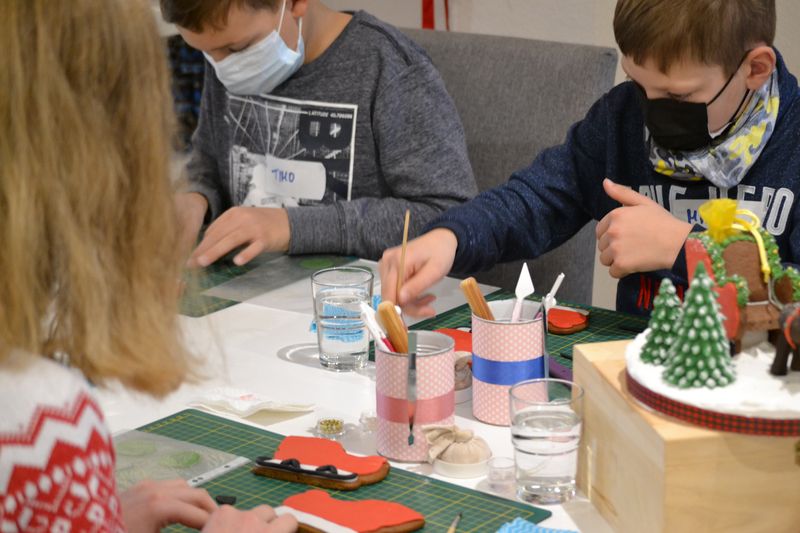 In diesem Kurs wurde eine weihnachtliche Krippe aus Lebkuchen dekoriert und das ist den kleinen Künstlern wirklich gut gelungen!